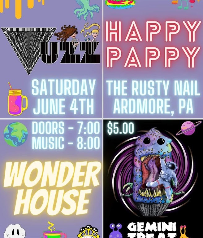 Vuzz joined Philadelphia bands Gemini Treat, Wonderhouse, and Happy Pappy on stage at The Rusty Nail for a Saturday, June 4th show.