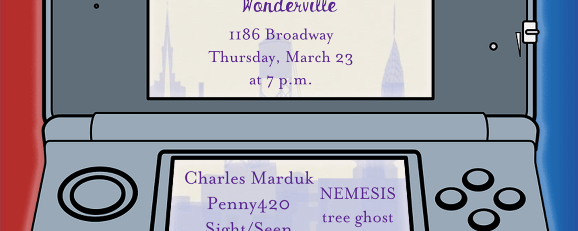 Eight acts will perform at this month’s Brooklyn Experimental Electronic Music Meetup at Wonderville, a barcade with over 20 stand-up game consoles featuring indie games. NO COVER. Come drink, game, and network with New York’s brightest up-and-coming (and established) experimental electronic musicians. Playing: CHARLES MARDUCK, PENNY420, SIGHT/SEEN, VUZZ, NEMESIS, TREE GHOST, LATEBIT, and VOID. 21+ https://fb.me/e/4w6dP6Ppg