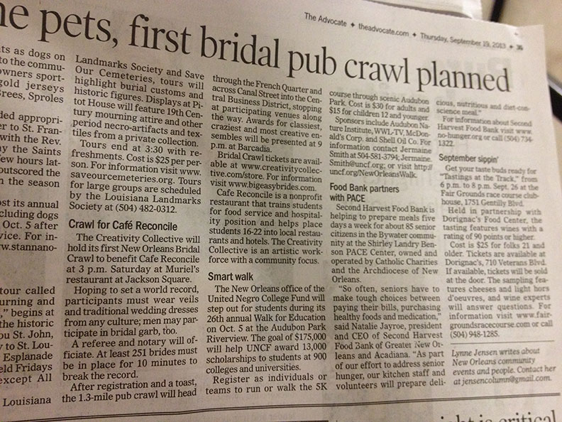 Creativity Collective announces fundraiser, Bridal Pub Crawl to benefit Cafe Recconcile Like Loading...